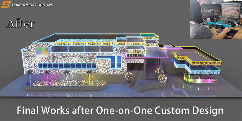 LEJIN's engineering customization and venue design services always adhere to the core principle of scenario adaptation and practicality. We refuse rigid template design. Every solution is tailor-made according to the client's specific demands and actual site conditions, balancing visual aesthetics, on-site practicability and long-term safety. In addition, we provide full-cycle implementation support, including detailed layout drawings, lighting layout plans and professional construction guidelines. For complex venues, on-site technical guidance is also available to ensure perfect implementation and avoid disconnection between decorative lighting design and construction. Our service scope covers festival themed lighting, commercial art installation lighting, cultural tourism night scenery, scenic spot motif decoration, municipal holiday arrangement and other engineering types, fully meeting customized demands for projects of all scales and scenarios.