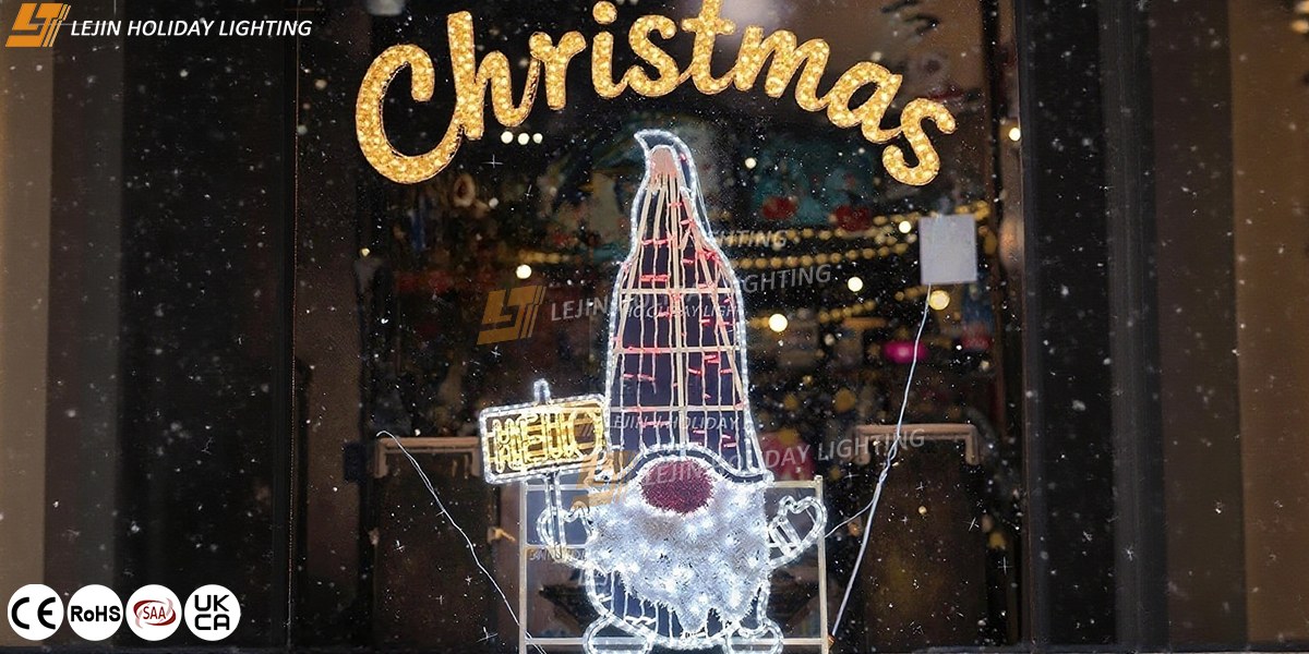 Outdoor engineering scenarios prioritize durability and environmental adaptability for waterproof 2D motif light combinations. For open spaces like municipal squares and commercial streets, a "core nodes + radial arrangement" strategy is recommended: use large Christmas-themed 2D motif lights as core nodes, with wind-resistant and rust-proof metal frames suitable for long-term outdoor use. Hang small 2D motif lights (e.g., snowflakes, pine branches) on street lamps and green belts around the core to form a "core-driven surrounding" lighting layout. A municipal Christmas project case showed this combination not only reduced material costs but also shortened the construction period due to the easy installation of the main motif frames. For linked lighting of street-facing shops, a "unified frame + differentiated content" plan is ideal: install unified 2D Christmas border motif lights on shop facades to ensure a consistent overall style; each shop can match unique outdoor christmas light decor based on its positioning (e.g., Christmas food patterns for restaurants, gift box patterns for retail stores), balancing the unity of street lighting and individual shop characteristics.