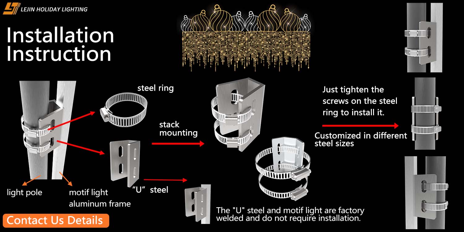 Compared with the traditional installation method that requires multiple people to collaborate and takes 1-2 hours for the cumbersome process, this design can reduce the installation time for a single group to within 20 minutes, increasing the installation efficiency by nearly 3 times. The fast installation pace not only shortens the overall construction period but also directly reduces the labor cost - if 50 groups are installed per day on average, about 3 workers' daily working hours can be saved, significantly reducing the client's labor expenses. Whether it is for outdoor festival decoration, commercial scene decoration or batch installation of projects, this convenient structure can easily handle all scenarios, allowing customers to ensure the installation quality while maximizing the reduction of time and cost investment.