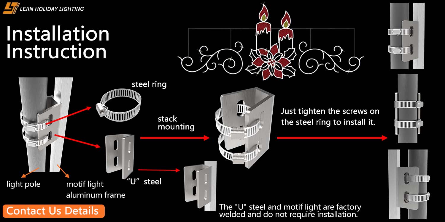 The motif light of this product has fully considered the convenience of customers in its installation design. Specifically, it adopts a steel ring and "U" steel combination installation scheme. This modular design significantly simplifies the installation process: simply align the "U" steel precisely, then quickly snap it into place using the steel ring, and the assembly can be completed without the need for complex tools. Even novice operators can quickly get the hang of it.