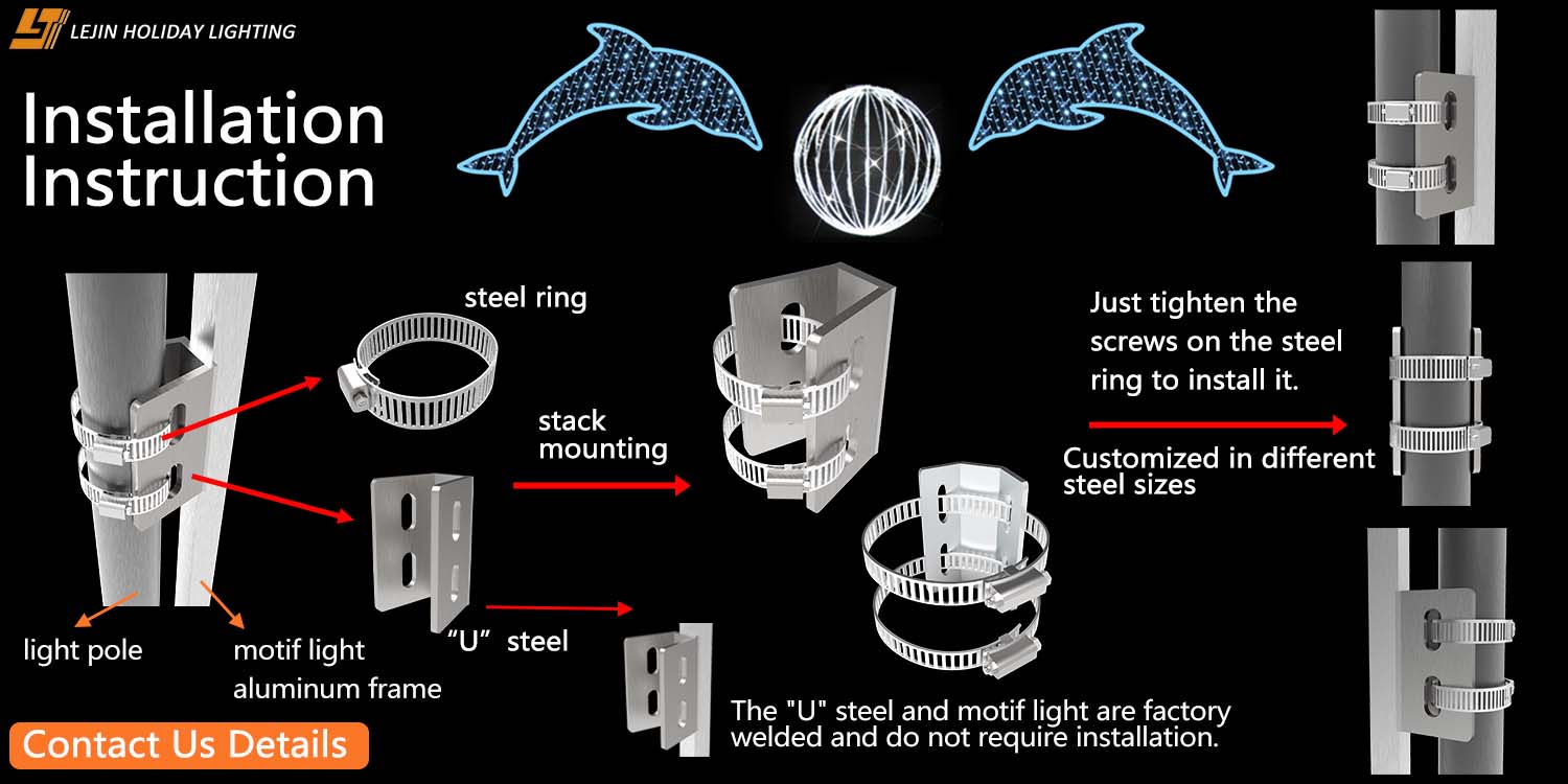 The motif light of this product has fully considered the convenience of customers in its installation design. Specifically, it adopts a steel ring and "U" steel combination installation scheme. This modular design significantly simplifies the installation process: simply align the "U" steel precisely, then quickly snap it into place using the steel ring, and the assembly can be completed without the need for complex tools. Even novice operators can quickly get the hang of it.