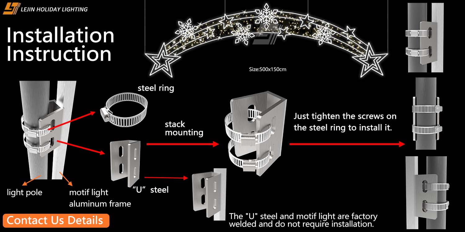 Compared with the traditional installation method that requires multiple people to collaborate and takes 1-2 hours for the cumbersome process, this design can reduce the installation time for a single group to within 20 minutes, increasing the installation efficiency by nearly 3 times. The fast installation pace not only shortens the overall construction period but also directly reduces the labor cost - if 50 groups are installed per day on average, about 3 workers' daily working hours can be saved, significantly reducing the client's labor expenses. Whether it is for outdoor festival decoration, commercial scene decoration or batch installation of projects, this convenient structure can easily handle all scenarios, allowing customers to ensure the installation quality while maximizing the reduction of time and cost investment.