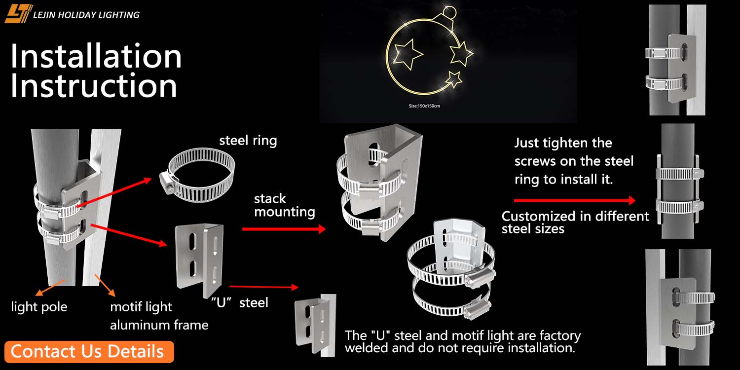 The motif light of this product has fully considered the convenience of customers in its installation design. Specifically, it adopts a steel ring and "U" steel combination installation scheme. This modular design significantly simplifies the installation process: simply align the "U" steel precisely, then quickly snap it into place using the steel ring, and the assembly can be completed without the need for complex tools. Even novice operators can quickly get the hang of it.
