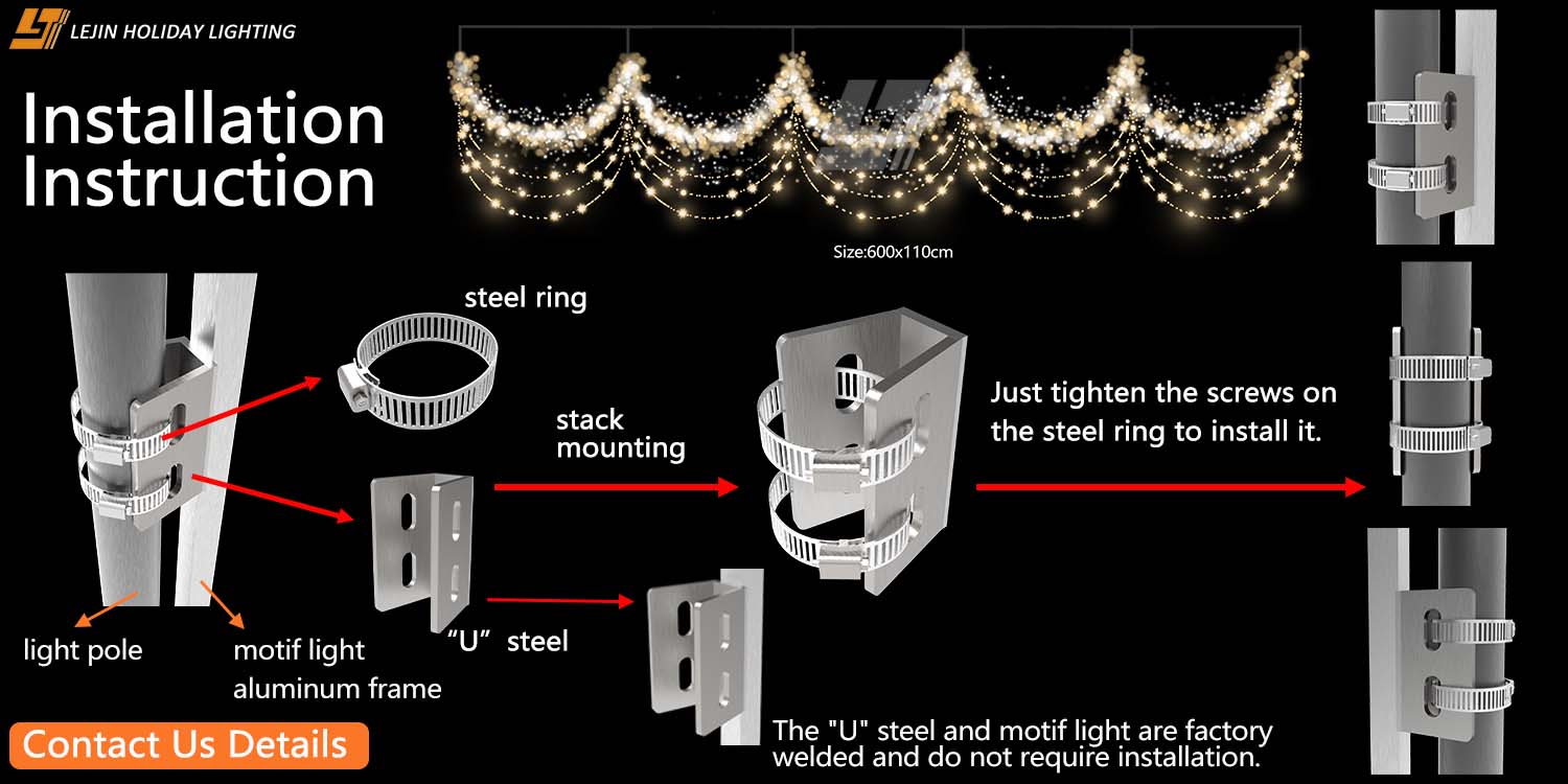 Compared with the traditional installation method that requires multiple people to collaborate and takes 1-2 hours for the cumbersome process, this design can reduce the installation time for a single group to within 20 minutes, increasing the installation efficiency by nearly 3 times. The fast installation pace not only shortens the overall construction period but also directly reduces the labor cost - if 50 groups are installed per day on average, about 3 workers' daily working hours can be saved, significantly reducing the client's labor expenses. Whether it is for outdoor festival decoration, commercial scene decoration or batch installation of projects, this convenient structure can easily handle all scenarios, allowing customers to ensure the installation quality while maximizing the reduction of time and cost investment.