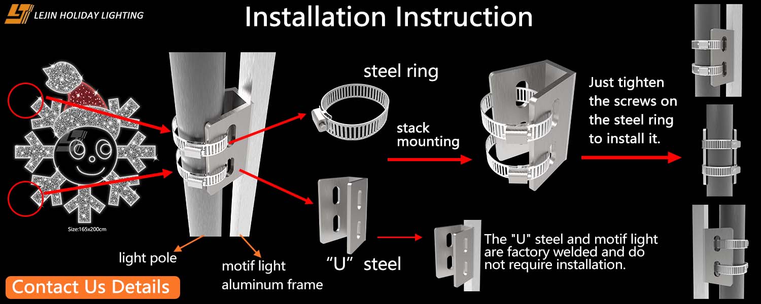 Compared with the traditional installation method that requires multiple people to collaborate and takes 1-2 hours for the cumbersome process, this design can reduce the installation time for a single group to within 20 minutes, increasing the installation efficiency by nearly 3 times. The fast installation pace not only shortens the overall construction period but also directly reduces the labor cost - if 50 groups are installed per day on average, about 3 workers' daily working hours can be saved, significantly reducing the client's labor expenses. Whether it is for outdoor festival decoration, commercial scene decoration or batch installation of projects, this convenient structure can easily handle all scenarios, allowing customers to ensure the installation quality while maximizing the reduction of time and cost investment.