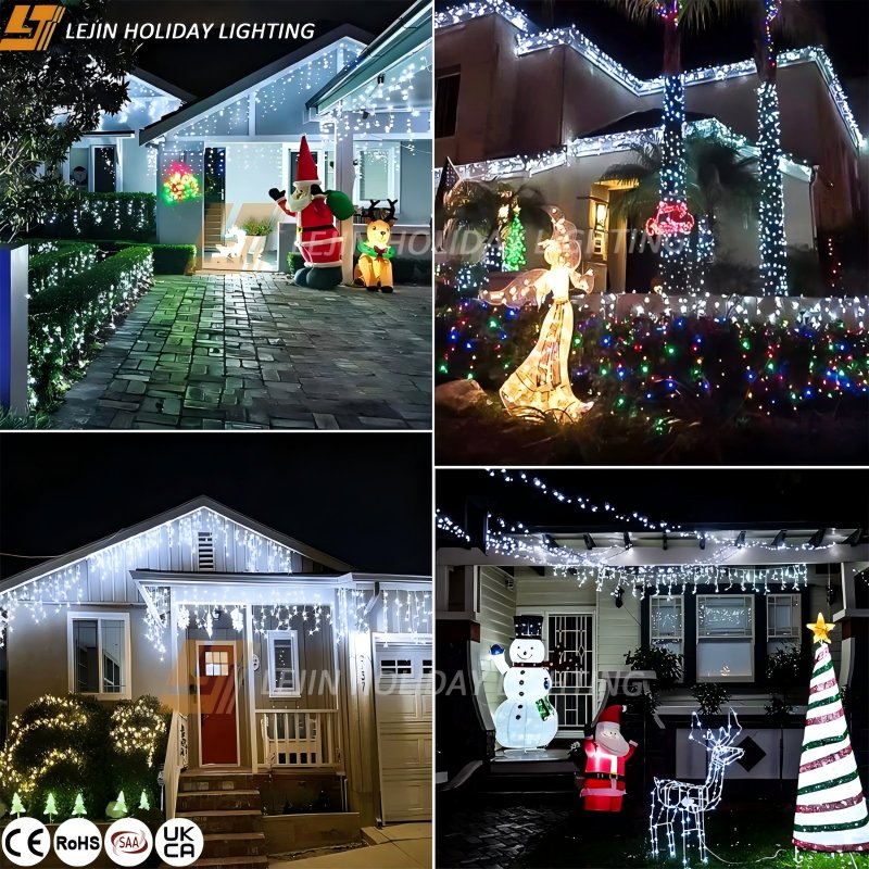 In summary, outdoor icicle lights and curtain lights each have their advantages in outdoor projects, and their combination can unleash greater value. Icicle lights excel in shaping the three-dimensional contours of buildings, adding dynamic lines to the space; curtain lights focus on large-area uniform lighting, creating a stable visual foundation; and their combination achieves multi-level light and shadow effects, enhancing the overall quality of the project.