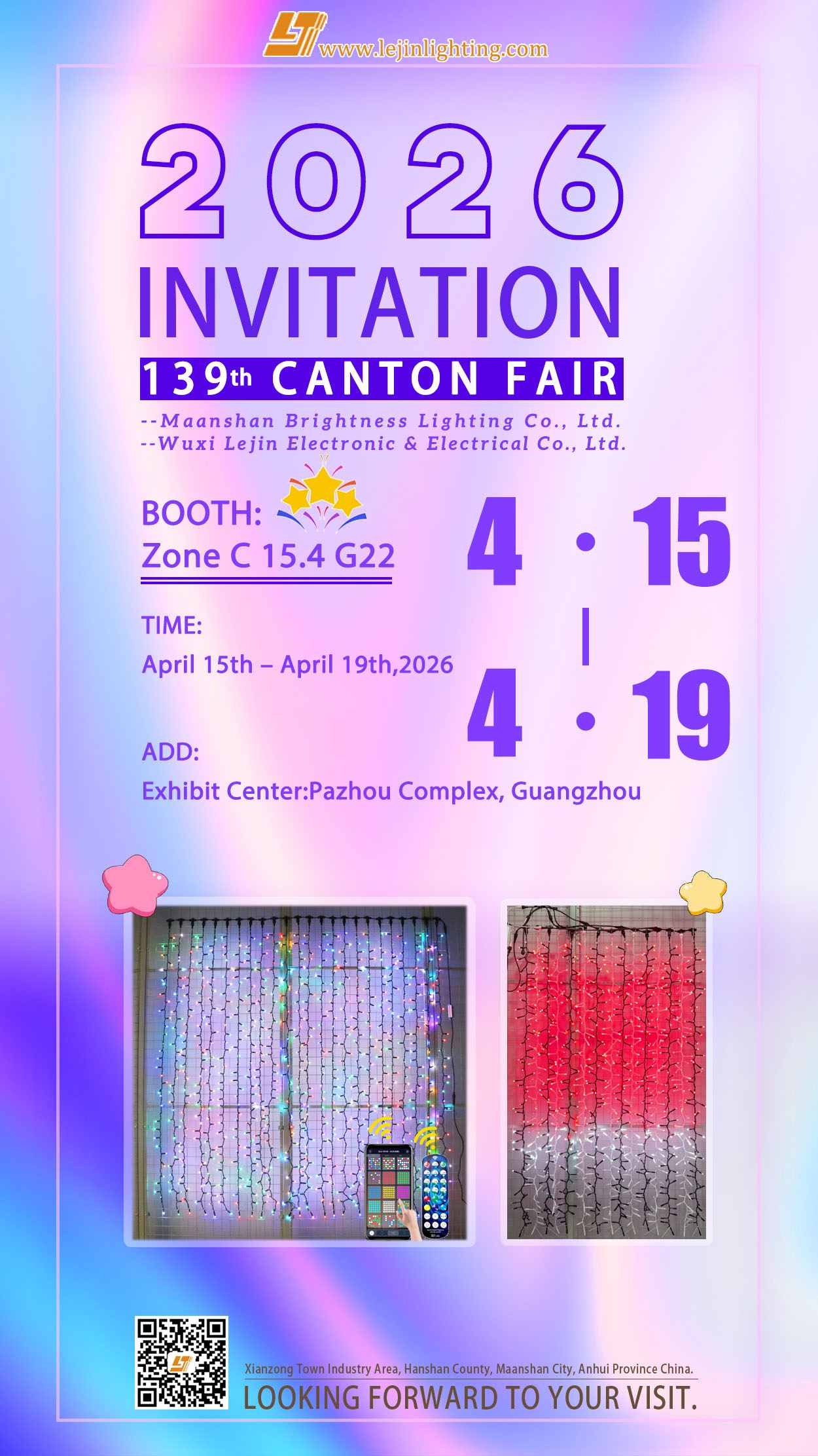 On behalf of Waanshan Brightness Lighting Co., Ltd. and Wuxi Lejin Electronic & Electrical Co., Ltd., we sincerely invite you to the 139th Canton Fair (China Import and Export Fair) in 2026. As a landmark event in global trade, the Canton Fair is an important platform for industry professionals to establish connections, discover innovative products, and explore cooperation opportunities.