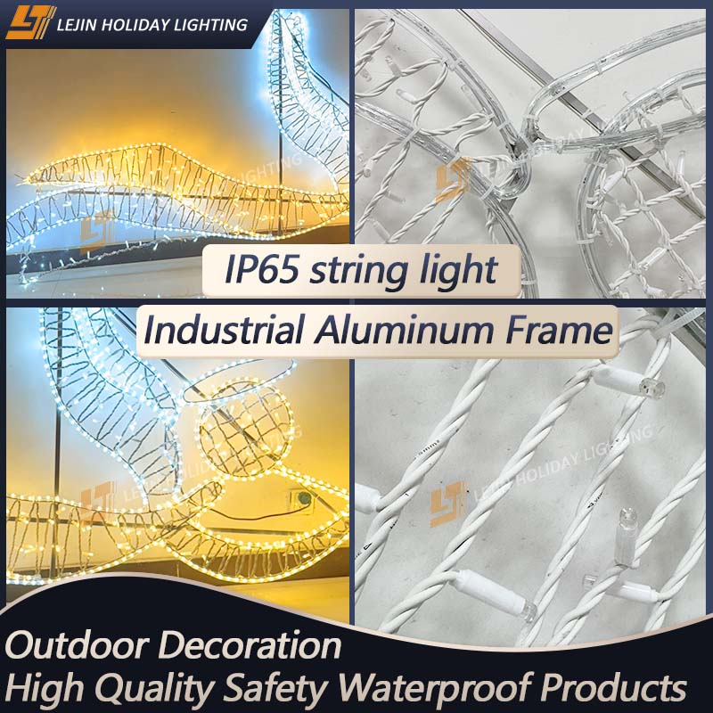 This product consists of a high-strength metal frame and high-quality rope lights and string lights, with rich colors and dazzling light effects. This product is highly waterproof, with IP65 level water resistance, can work normally in all kinds of weather, customers do not need to worry about whether it can be used in rainy days. We have our own design department and quality inspection department, so all products have passed our risk assessment, there will be no safety problems, customers can rest assured to use. We have good after-sales team in order that you can receive satisfied result no matter when you have relevant problems for the products. Tailored, lightning delivery, reasonable price, professional guidance, come to consult!