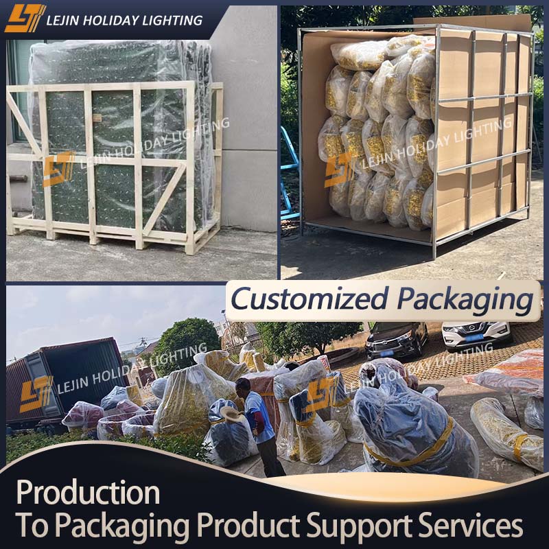 With 26 years of professional manufacturing experience in festival decorative lights, we offer personalized customization services. The decorative lights feature professional detachable design, facilitating easy assembly, disassembly, transportation, and storage. Our professional design team can customize the decorative lights and scene solutions as needed. The factory provides comprehensive one-stop services, from product customization to packaging and transportation, all tailored to your requirements. Feel free to contact us at any time to obtain exclusive customization solutions and services.