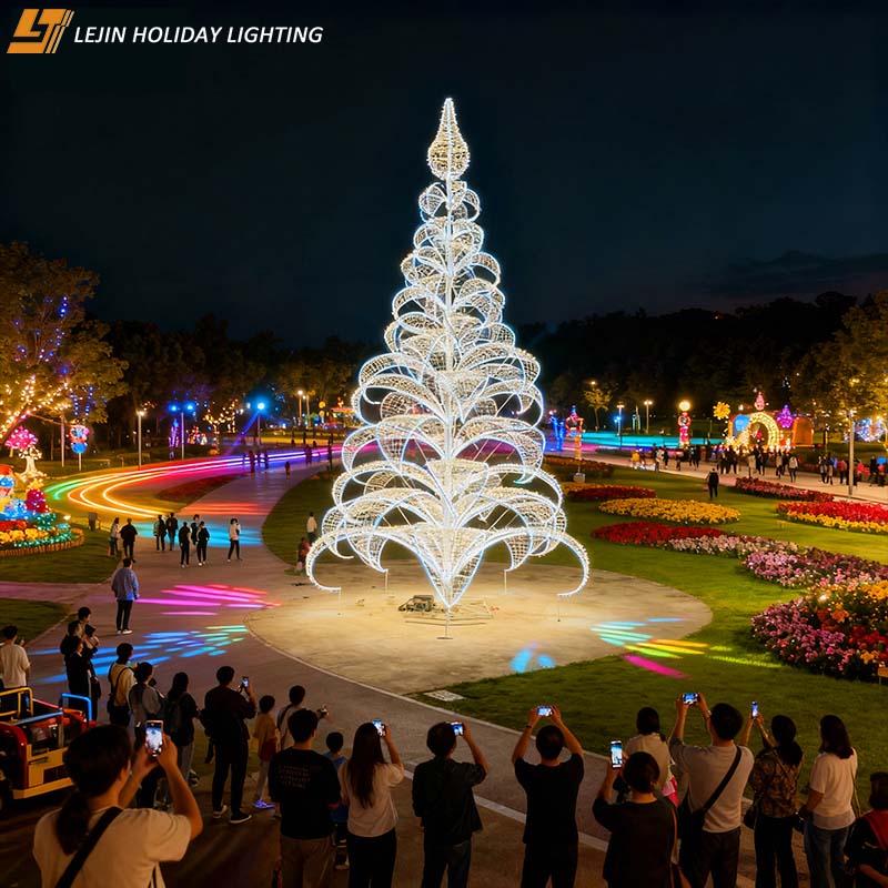 1. The 3D fountain motif lights spiral tree be constituted with Rope light and rubber wire bubble shell lamp string and fireproof turf 2. 3D fountain motif lights spiral tree are suitable for a variety of scenarios, such as outdoor plaza, amusement parks,street and other landscape decoration 3. All our 3D three-dimensional motif lights and landscape lights have a certain fireproof, waterproof and moisture-proof effect. 4. The company focuses on the production of LED motif lights and various Christmas light string products, with 25 years of experience in the industry. 5. Innovative customization, fast and affordable, professional service, action now!