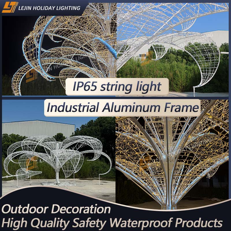 This product consists of a high-strength metal frame and high-quality rope lights and string lights, with rich colors and dazzling light effects. This product is highly waterproof, with IP65 level water resistance, can work normally in all kinds of weather, customers do not need to worry about whether it can be used in rainy days. We have our own design department and quality inspection department, so all products have passed our risk assessment, there will be no safety problems, customers can rest assured to use. We have good after-sales team in order that you can receive satisfied result no matter when you have relevant problems for the products. Tailored, lightning delivery, reasonable price, professional guidance, come to consult!