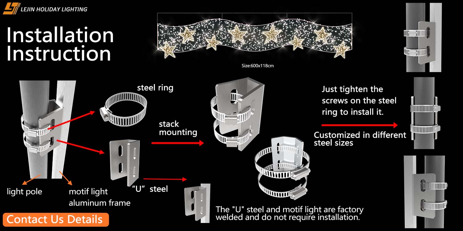 Compared with the traditional installation method that requires multiple people to collaborate and takes 1-2 hours for the cumbersome process, this design can reduce the installation time for a single group to within 20 minutes, increasing the installation efficiency by nearly 3 times. The fast installation pace not only shortens the overall construction period but also directly reduces the labor cost - if 50 groups are installed per day on average, about 3 workers' daily working hours can be saved, significantly reducing the client's labor expenses. Whether it is for outdoor festival decoration, commercial scene decoration or batch installation of projects, this convenient structure can easily handle all scenarios, allowing customers to ensure the installation quality while maximizing the reduction of time and cost investment.