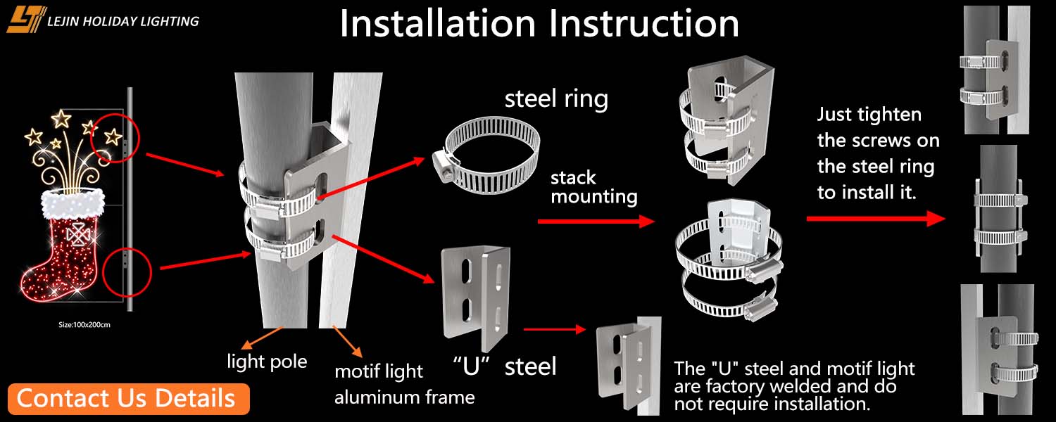 Compared with the traditional installation method that requires multiple people to collaborate and takes 1-2 hours for the cumbersome process, this design can reduce the installation time for a single group to within 20 minutes, increasing the installation efficiency by nearly 3 times. The fast installation pace not only shortens the overall construction period but also directly reduces the labor cost - if 50 groups are installed per day on average, about 3 workers' daily working hours can be saved, significantly reducing the client's labor expenses. Whether it is for outdoor festival decoration, commercial scene decoration or batch installation of projects, this convenient structure can easily handle all scenarios, allowing customers to ensure the installation quality while maximizing the reduction of time and cost investment.