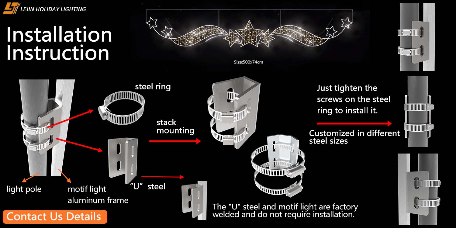 Compared with the traditional installation method that requires multiple people to collaborate and takes 1-2 hours for the cumbersome process, this design can reduce the installation time for a single group to within 20 minutes, increasing the installation efficiency by nearly 3 times. The fast installation pace not only shortens the overall construction period but also directly reduces the labor cost - if 50 groups are installed per day on average, about 3 workers' daily working hours can be saved, significantly reducing the client's labor expenses. Whether it is for outdoor festival decoration, commercial scene decoration or batch installation of projects, this convenient structure can easily handle all scenarios, allowing customers to ensure the installation quality while maximizing the reduction of time and cost investment.
