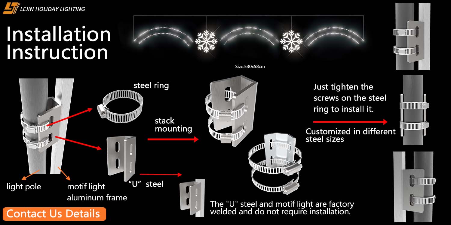 Compared with the traditional installation method that requires multiple people to collaborate and takes 1-2 hours for the cumbersome process, this design can reduce the installation time for a single group to within 20 minutes, increasing the installation efficiency by nearly 3 times. The fast installation pace not only shortens the overall construction period but also directly reduces the labor cost - if 50 groups are installed per day on average, about 3 workers' daily working hours can be saved, significantly reducing the client's labor expenses. Whether it is for outdoor festival decoration, commercial scene decoration or batch installation of projects, this convenient structure can easily handle all scenarios, allowing customers to ensure the installation quality while maximizing the reduction of time and cost investment.