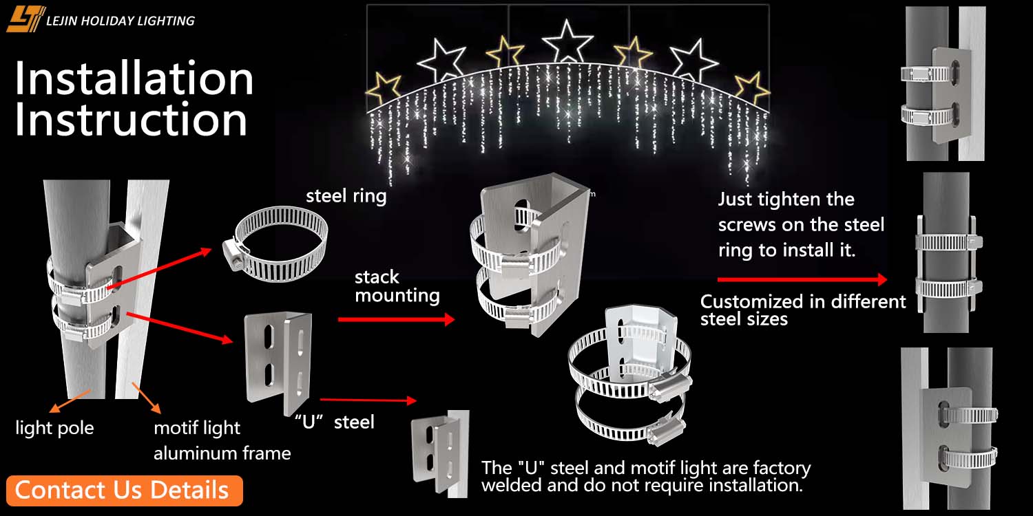 Compared with the traditional installation method that requires multiple people to collaborate and takes 1-2 hours for the cumbersome process, this design can reduce the installation time for a single group to within 20 minutes, increasing the installation efficiency by nearly 3 times. The fast installation pace not only shortens the overall construction period but also directly reduces the labor cost - if 50 groups are installed per day on average, about 3 workers' daily working hours can be saved, significantly reducing the client's labor expenses. Whether it is for outdoor festival decoration, commercial scene decoration or batch installation of projects, this convenient structure can easily handle all scenarios, allowing customers to ensure the installation quality while maximizing the reduction of time and cost investment.